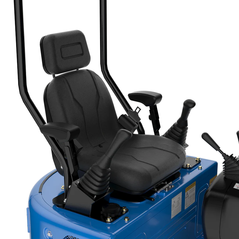 Todos os modelos incluem de série um balde dentado de 30 cm, motor Koop , braço fixo e comandos frontais.